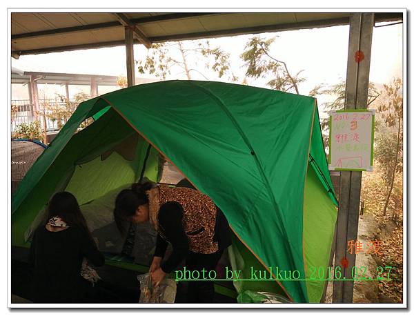 營主終於出現了,喬了大半天終於喬好了,小棚的三個位置我們共有四帳還有一帳必須搭在樹林區,所以我們先三帳另一帳晚點再看看天氣吧!