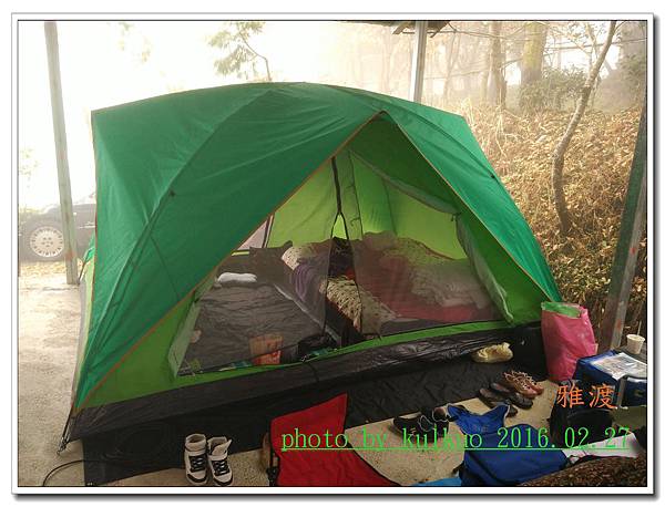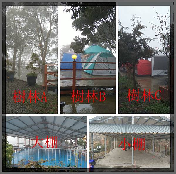 ↓都中午了只有我們到場,營主不知道跑到那裡去了一直連絡不到人【喬一下雨棚下的位置】,因為我們訂到的是樹林A區