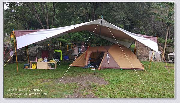 營區還下著小雨,看樣子不太會停雨,先把5X8天幕搭起來再搭帳篷