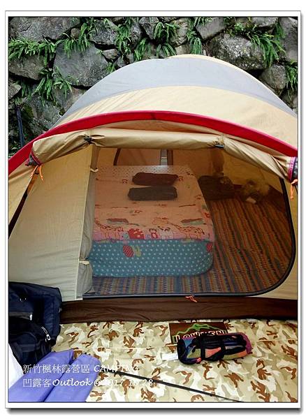 隨後,阿懋也跟著抵達開始搭帳,阿懋新購的床罩組真可愛
