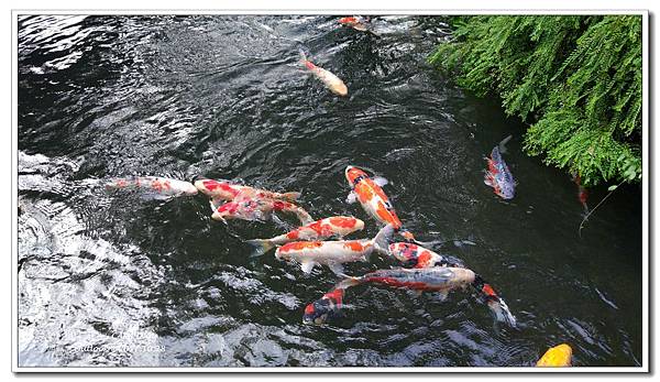 入口處的水池,養了不少觀賞魚,魚飼料餵魚 20元/包,不可以用其他食物餵食哦